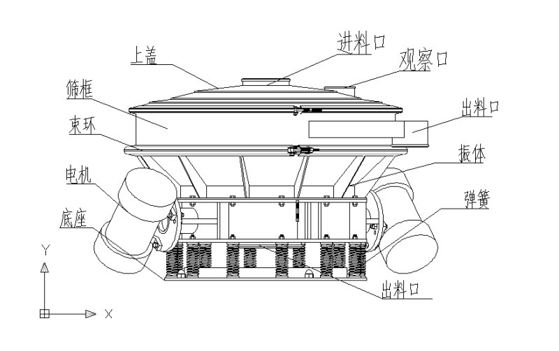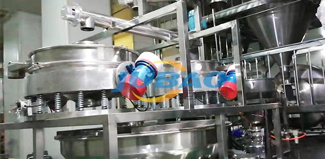 直排筛以高频振动电机为激振源,物料进入系统内部后,受振动源作用力在筛面上做三维旋转运动,面粉和结块充分分散,快速过网直接进入下部面仓。杂质异物被分离,向排渣口排出,起到生产线上的“安全员”作用。